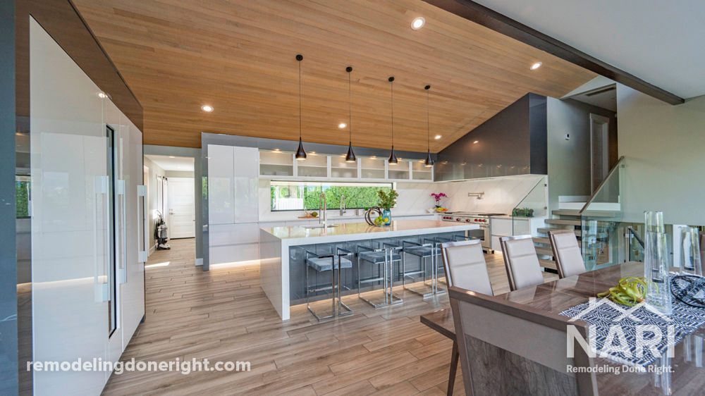 This eclectic '70s home needed a total remodel in order to modernize its main living areas and open up the downtown views. After redesigning the primary bathroom, moving the kitchen from the back of the house, and adding a full wall of windows overlooking the deck where the kitchen was originally located, this home is now the ideal location for stunning city views.