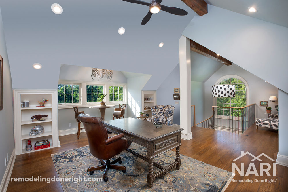 During the COVID-19 pandemic's growing trend for companies authorizing remote work, this client began working from home and realized he needed a designated office space to stay productive. An existing home office was already occupied by another family member. The client wanted the new office to be close to the master suite now waking up and starting the day's job is even more convenient!