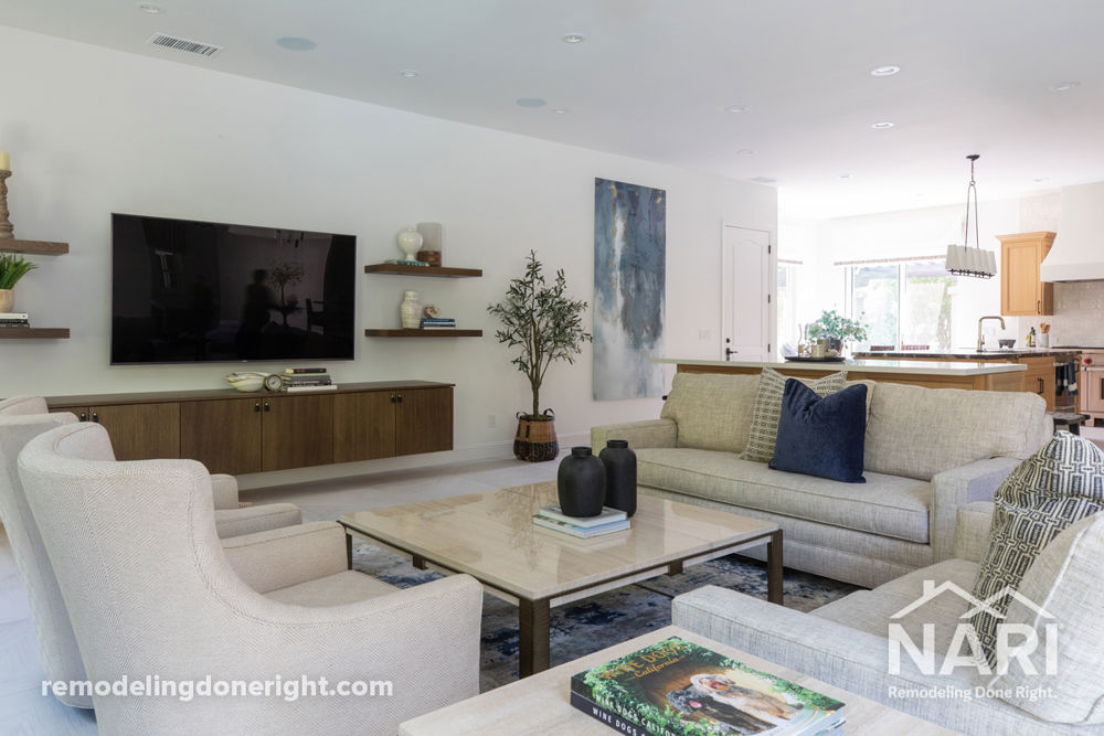 To make their home more functional, these homeowners requested a total remodel. The foyer was refreshed with new paint, lighting, and flooring for a brighter entry. After removing arched openings and separating walls, the bar and lounge areas were relocated and finished with customer millwork. To finish, both the pool bathroom and Jack and Jill bathrooms were remodeled to prioritize functionality.