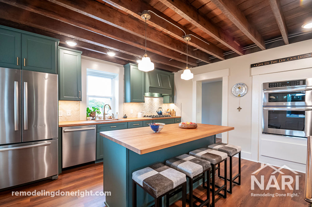 This pre-civil war home was a solid masonry home with exterior walls and most interior walls three brick thick. The hope for the project was to eliminate the poor layout from 1851 and bring into the modern area of hosting without loosing the old world feel. A 1980s kitchen was gutted, removing a servant's staircase and leaving the ceiling exposed. Large sections of interior masonry walls were removed, and steel beams were installed to allow for hosting large groups. A luxury bathroom and comfortable laundry room were remodeled to the owner's specifications.