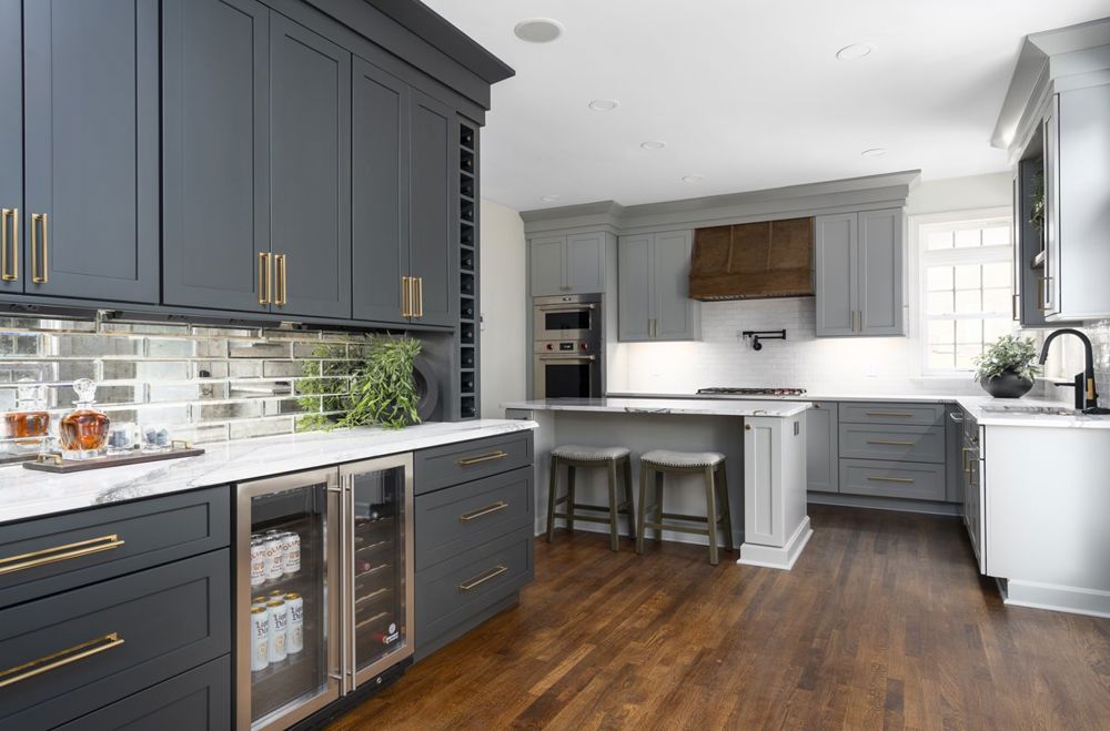 With so much available interior space, it was a mystery to these clients why their house felt cramped, chaotic, and flowed so poorly. The home needed a layout update and storage upgrade especially in kitchen space. With no existing pantry and no seating in the kitchen, their space was in dire need of a whole new vision. For a family who loves to entertain guests almost as much as they love hanging out with their kids, a space was created that mixed sophisticated elegance with family function, including the serving station and chilled wine dispenser.