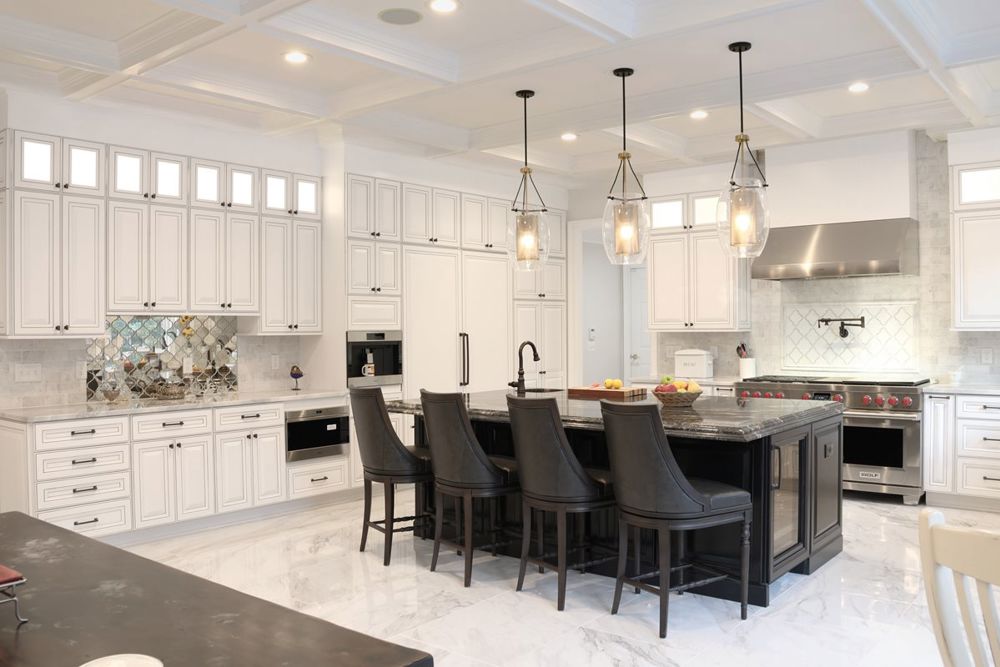 This large single-family home underwent a total transformation to create a more upscale, airy living space. The outdated kitchen with dark cabinets, broken appliances, and poor layout was replaced with a spacious, modern design. The master suite was expanded to include a large walk-in closet, a luxurious marble bathroom, and French doors leading to a Juliette balcony overlooking the pool. The main level was reworked with new flooring, coffered ceilings, and a redesigned kitchen featuring a 60 Wolf stove, marble countertops, a hammered copper sink, and a beverage fridge. The result is a stunning home, perfect for entertaining and admired by neighbors.