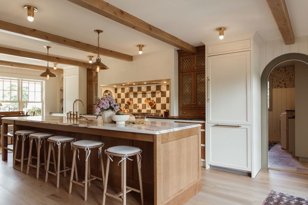 This busy family's main-floor remodel introduced natural light, a large kitchen island, and a cohesive entertainment space. Key challenges included removing a load-bearing wall and installing handmade tiles, both addressed with precision. The design blends old-world charm with modern functionality, adding custom architectural details and transforming the home into an inviting space for family gatherings.