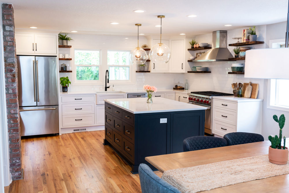 In this turn of the century home, the clients wanted to bring back the original charm and character of a home constructed by a true craftsperson. The 1970s kitchen was transformed from a dark, depressing room into a space with lots of light, space and life! White, custom flush-inset cabinetry was installed to bring a more authentic appearance to the woodwork; Snowbound was selected in a conversion varnish paint as the main color and paired with a white subway tile and Quartz counters for long-lasting use. Nothing was left untouched, including the hardwood floors, which were extended and completely refinished.