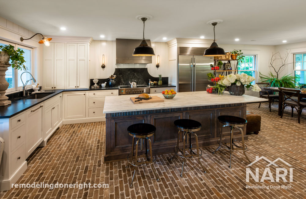 These homeowners knew their small, dark kitchen wasn't working for their growing family and quickly began making necessary changes. After removing dividing walls, three separate sections were combined in the new kitchen layout to create a family-friendly space. The result was a perfect gathering spot for eating, studying, or relaxing with vintage touches throughout.