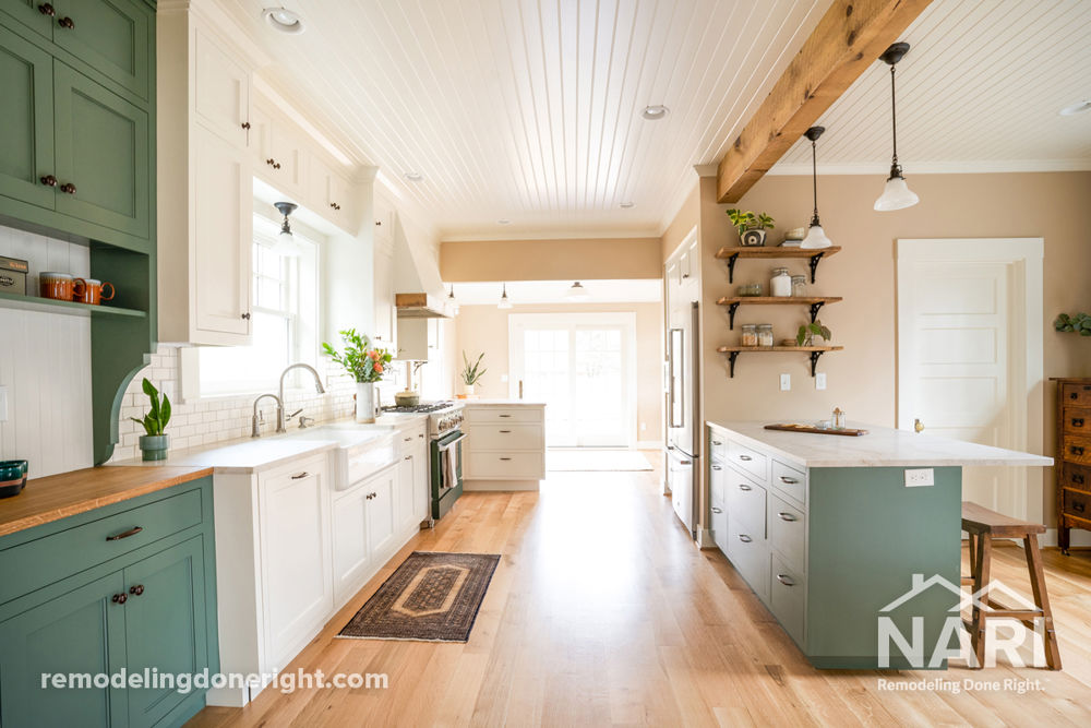 This family of four loved their 1911 farmhouse style home, but desperately needed an improved kitchen to keep up with their busy lives. Several functional enhancements were needed, including new windows, additional storage, and better access to the backyard. These updates were made without sacrificing style, and the final kitchen incorporated design elements that tie into the rest of their vintage home decor.