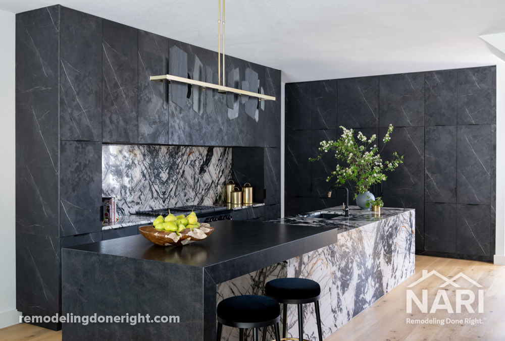 After learning about previous flood damage, these homeowners opted for a full kitchen remodel that prioritized an open floor plan. By closing off an exterior back door and the doorway to the dining room, there was new room available for a large refrigerator and freezer, an island with integrated appliances, and a range with ample counter space. The new kitchen is modern, spacious, and custom-designed to deliver the perfect balance of function and style.