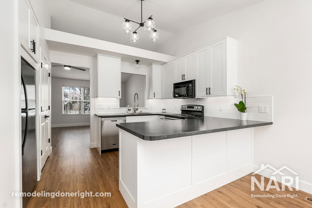Looking to remodel the outdated kitchen of their new home, this family wanted to add an additional serving area, larger and more cabinets for storage, and an island to account for extra seating, all within the original kitchen dimensions. The outcome made this remodel a master class in managing style and size.