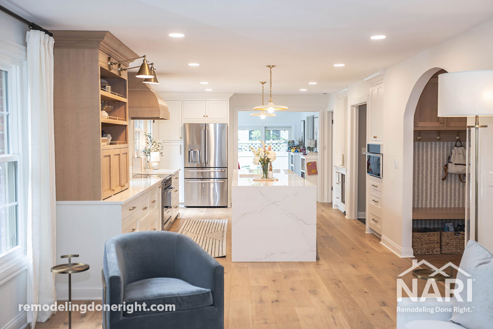 Feeding a growing family is a challenge, especially in a kitchen with no sightlines, a poor layout, and hazardous appliance placement. The floorplan was opened and reconfigured around an impressive eleven-foot island that fits family and friends alike. A new, strategically placed window now allows the parents to keep an eye on their children in the pool outside. The use of low-maintenance finishes and a light, bright color palette completes the transformation, creating a welcoming environment where this family can thrive for years to come.