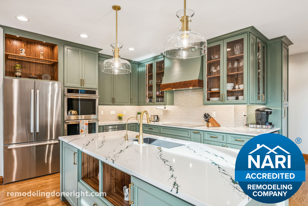 This kitchen underwent significant renovations to maximize functional living space, including the installation of an enormous steel beam and reclaiming space from the adjacent powder room and laundry room. Widened doorways and new flooring now seamlessly integrate the space with the family living areas, creating a more welcoming atmosphere for the entire family to enjoy.