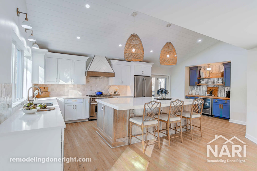 With a stunning view of the wetlands and stream on the opposite side of the home, relocating this kitchen across the main floor was a no-brainer. By prioritizing proper traffic flow and synergy across gathering spaces, the result is a modern, contemporary interior that maximizes this home's best features.