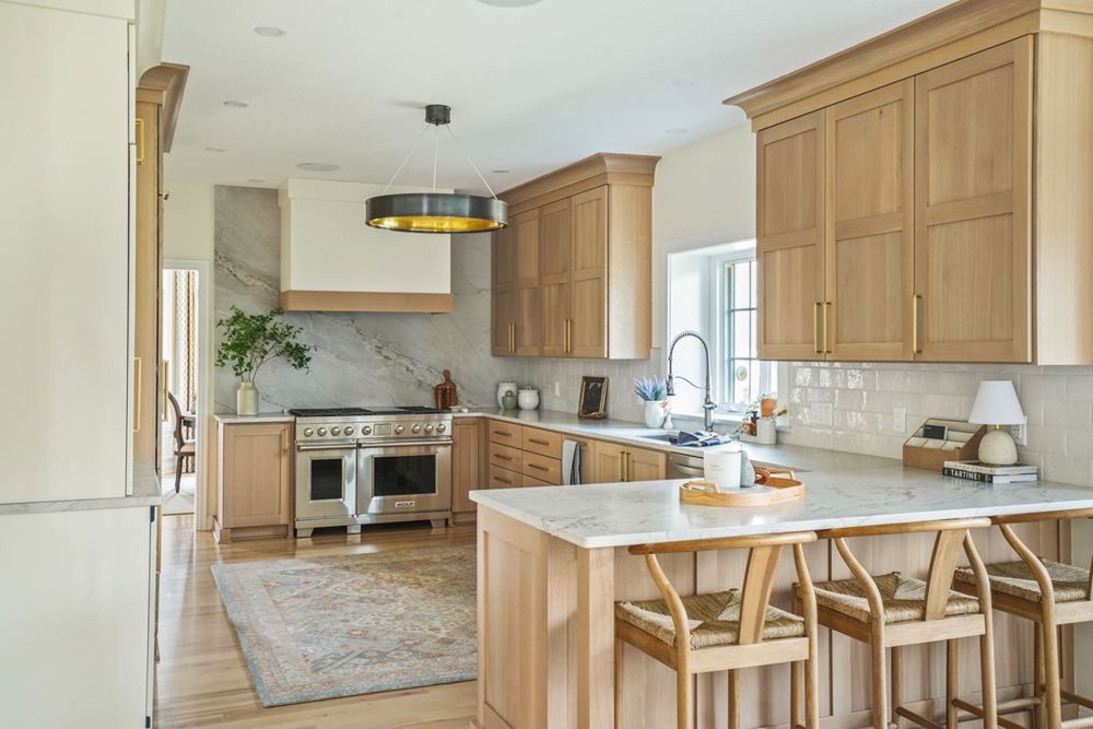 These clients both loved to cook but found their kitchen barely worked for one person, let alone two. The narrow room was too small for its two-level island, making passage impossible if anyone was seated. Lack of storage was a major issue. The clients wanted a more functional flow and a warm, inviting atmosphere.