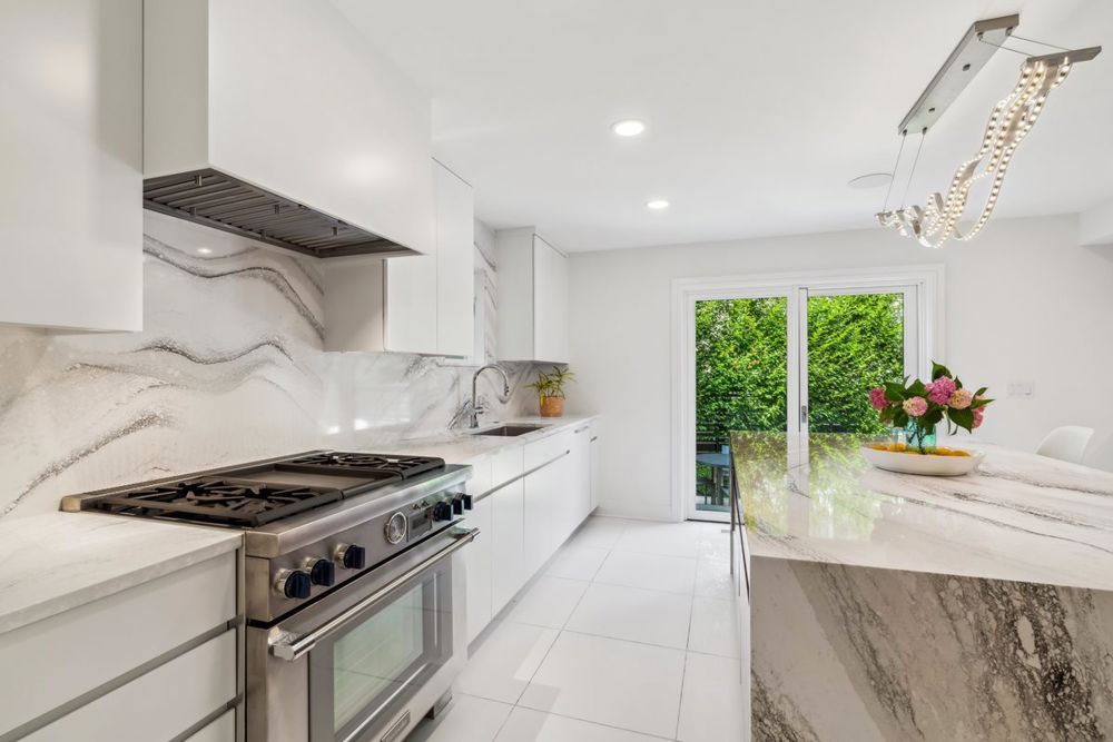 The clients purchased a home in a highly desirable neighborhood but craved a more contemporary style in the kitchen. They had also noticed some uneven floors and out-of-square walls that were cause for concern. The project completely reframed the entire kitchen structure, correcting mistakes made by previous contractors and redesigning the space into a practical, beautiful contemporary kitchen. With more appliances, better workflow, and the requested beverage center, this kitchen is perfectly suited to the clients' needs and personal style. A bright white, well-functioning kitchen with all the bells and whistles!