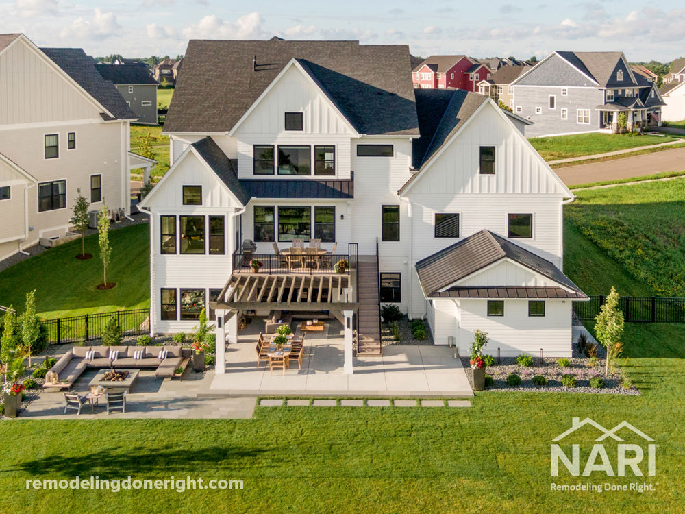 This young and active family wanted to create multiple entertainment spaces suitable for both sophisticated entertaining and outdoor family s'mores nights. They desired a distinct outdoor living space that elevated the home amongst its neighbors and tied in with the home's existing aesthetic. They also wanted to keep the yard big enough for the kids, friends and teammates, add much needed storage for outdoor furniture and equipment, and keep maintenance simple. The back yard now features an outdoor dining area, a sunken living room, an outdoor entertainment area, and additional storage space built with all of the home's current architectural features.