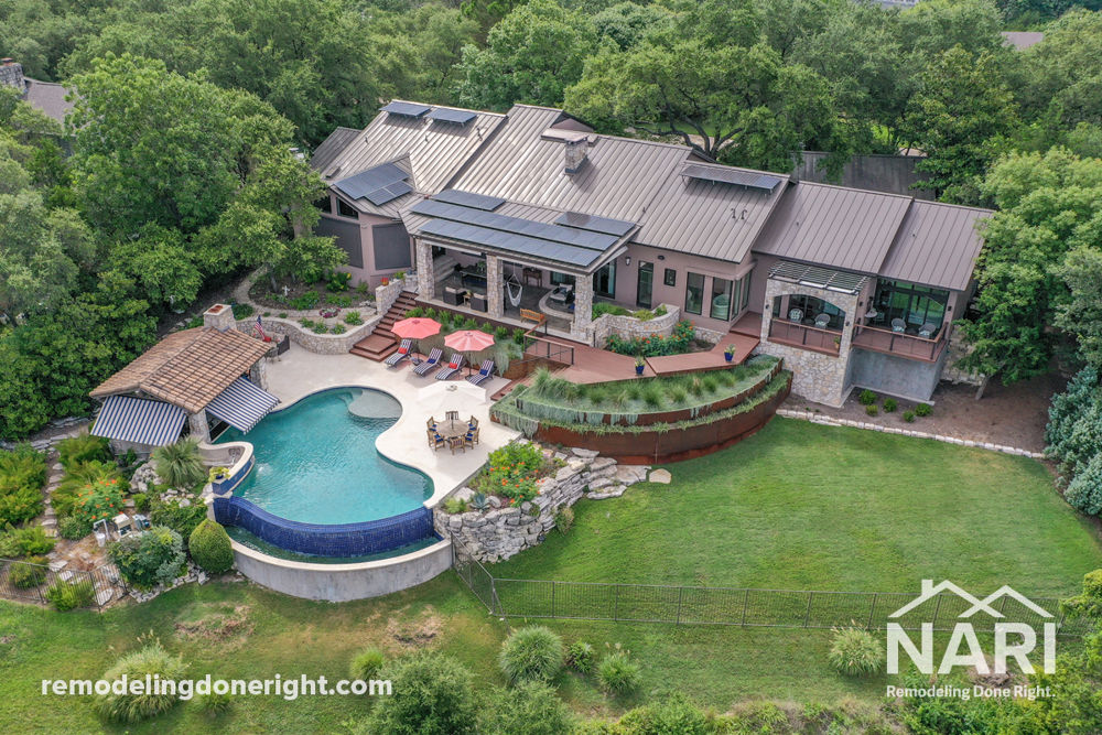 This clients' home has a stunning westward view overlooking Lake Austin, so they wanted a pool remodel and backyard rehabilitation for family gatherings. The residence was perfect for this newly married retired couple, but it needed a connection to tie the new addition to the outdoor entertaining areas. Not only was the pool area and surrounding patio updated, but safer access from the the upper patio to the lower pook deck and a connection from the new guest suite addition to the backyard entertaining areas was added as well. The resulting outdoor entertaining area is stunning and will serve as the backdrop for many family memories made in the Texas sun.