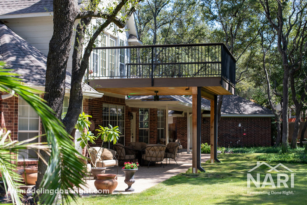 This homeowner wanted a large open second story deck to that extended their upstairs living area. The deck floor included a water catchment system to allow for an expansive dry space underneath they could enjoy rain or shine.
