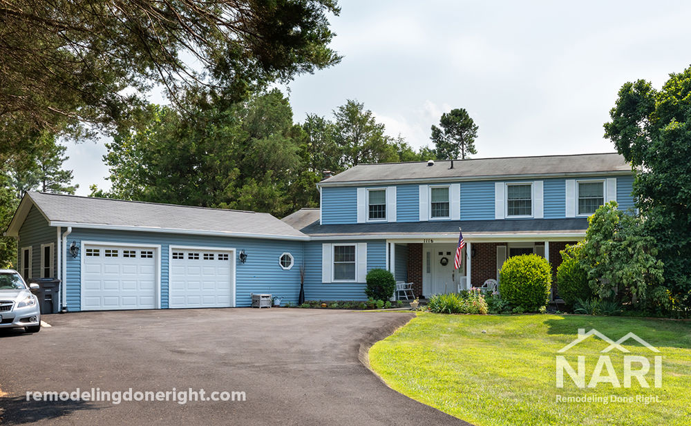 This couple was ready to retire and wanted a first story master suite addition and two-door garage built for aging in place. The plan was to convert the original garage into a master bedroom suite, and then add a mudroom and two-door garage with side entrance. The seamless connection of the existing home with new addition sets the stage for aging in place features including a wide doorway and entrances, a ramp from the garage to the mudroom, and a bedroom suite with universal bath. The curbless shower, wide hallways, double vanities and heated floor all were amenities they desired for their home.